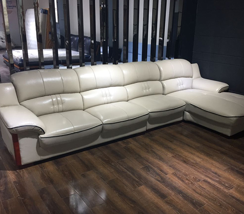 水元素软体家居简约现代客厅深色真皮软靠转角沙发