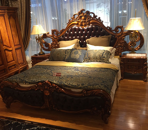 欧维森家具欧式客厅纯手工雕花真皮实木沙发