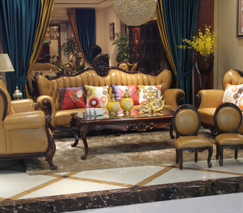豪森-北O世家欧式客厅双人位/三人位/单人位实木真皮沙发/茶几
