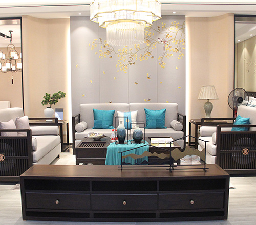 瑾琇堂前家具客厅新中式简约淡雅1+2+3沙发茶几组合