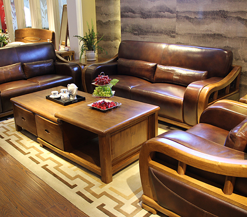 紫金梨木家具中式客厅真皮实木转角沙发组合