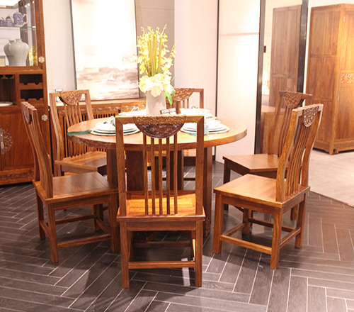 柏逸轩家具新中式经典实用客厅/餐厅圆形六人餐桌椅组合