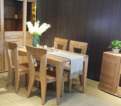 艾格美家家具欧式简洁淡雅原木色餐厅实木餐桌椅组合