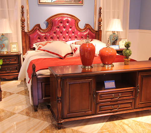 美弗阁家具典雅美式朴素气派卧室皮质软靠大床/床头柜组合