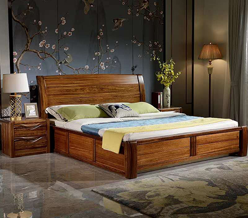 合木源家具中式卧室时尚简约双人大床+床头柜组合