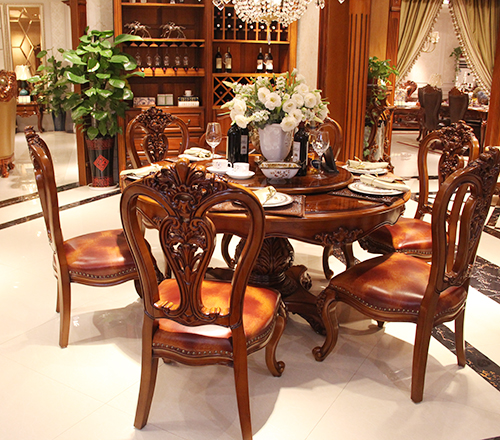 法诗诺家具欧式餐厅实木圆餐桌椅(一桌六椅)