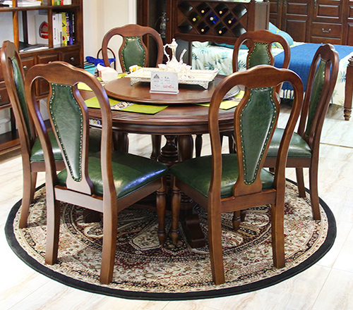 博典家居美式经典款餐厅实木圆餐桌椅(一桌六椅)