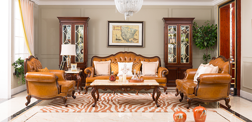 达西美家 美式轻奢客厅桃花芯木实木双人位/三人位/单人位沙发组合1713/金属框架长茶几/角几