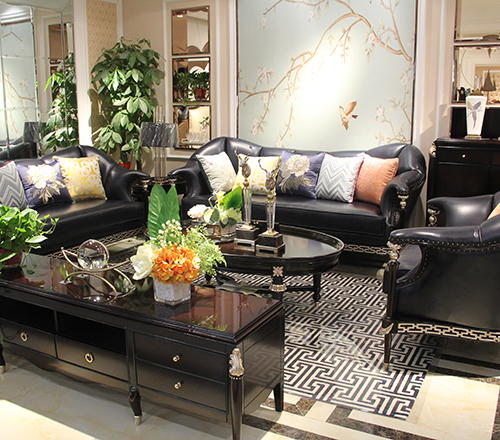 玉环大自然家具后现代家居卧室实木双人位/三人位/单人位皮沙发组合/茶几 黑檀色
