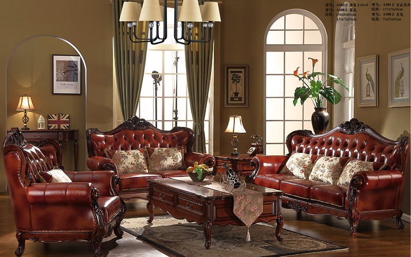 格林美居家具 美式客厅全实木红橡木沙发真皮组合