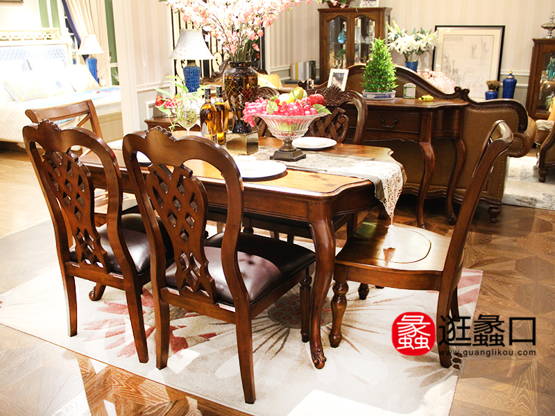 深圳·美吉印象家具美式餐厅实木长餐桌/无扶手餐椅