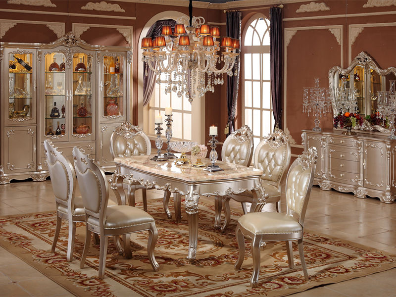 爱丽舍宫家具·爵典家居欧式餐厅长餐台/四门酒柜/餐边柜