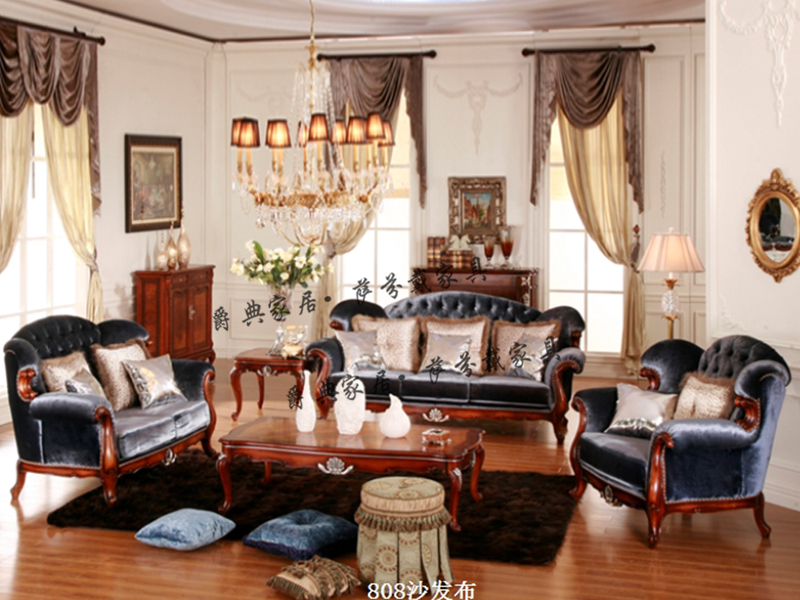 爵典家居·萨芬戴家具美式客厅实木布艺双人位+三人位+单人位沙发组合808