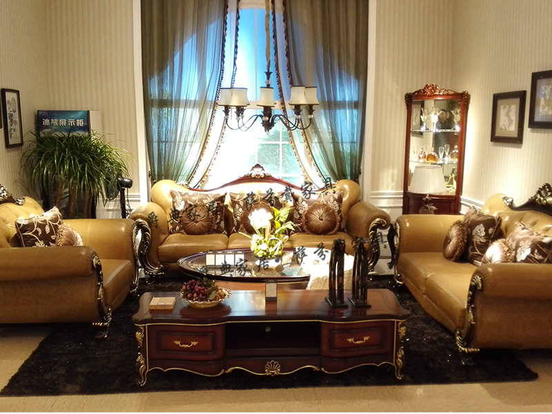 爵典家居·萨芬戴家具欧式奢华客厅实木真皮双人位+三人位+单人位沙发