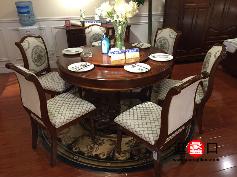 美·保罗家具美式餐厅圆餐桌椅(一桌六椅)/餐边柜