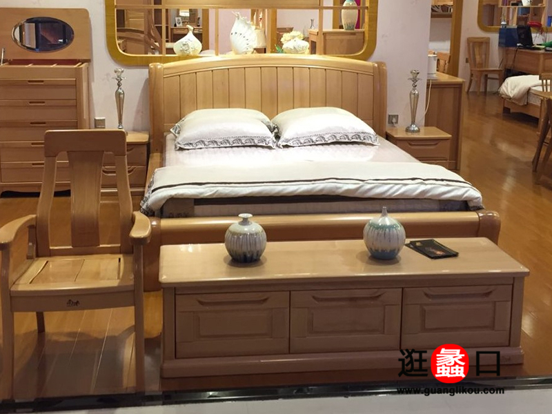 尚木家具简约现代卧室榉木实木双人床/床头柜