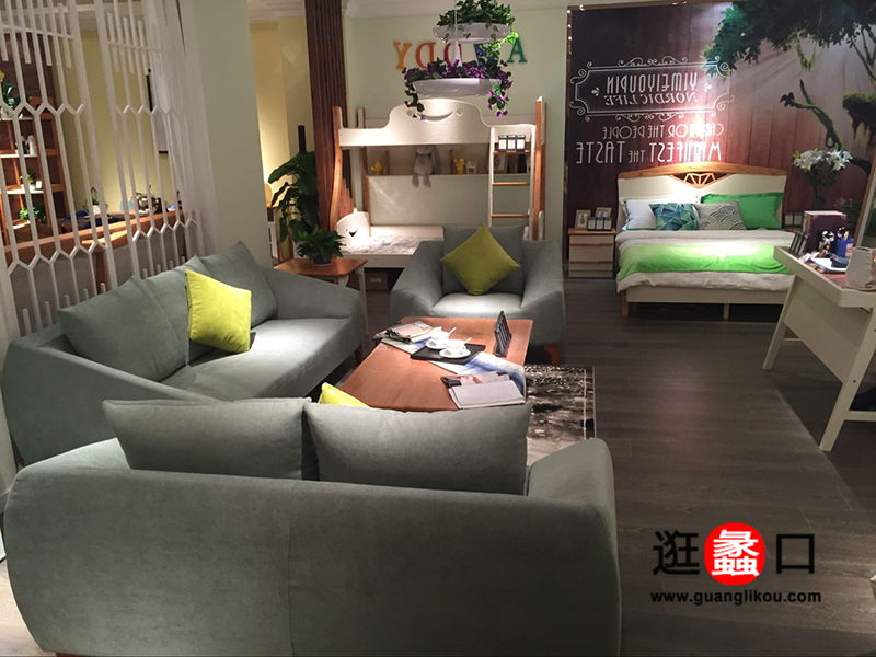 亿美优品家具北欧客厅布艺浅色双人位 三人位 单人位转角沙发