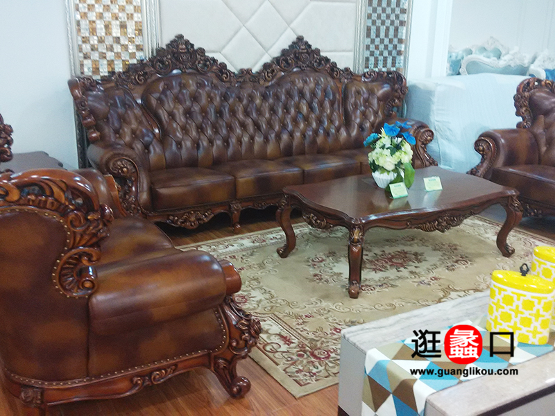 舒雅斯特家具欧式客厅实木真皮1+2+3沙发