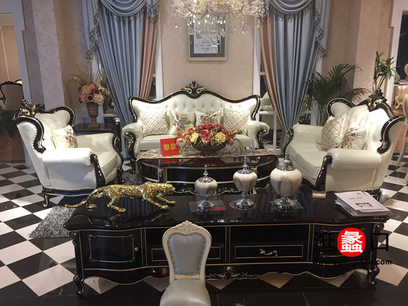 盛世尼曼家具新古典客厅真皮实木1+2+3床/茶几/电视柜