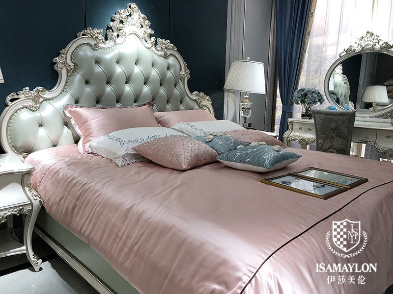 健辉家居·伊莎美伦家具欧式新古典家具欧式卧室实木榉木大床+床头柜组合