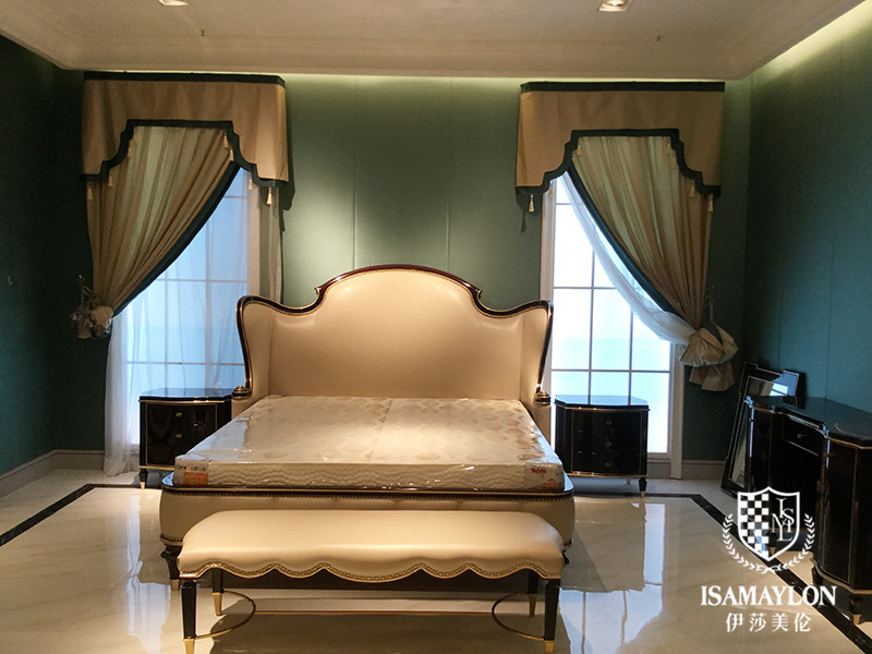 伊莎美伦欧式新古典家具欧式卧室白色榉木实木大床/床头柜/床尾凳
