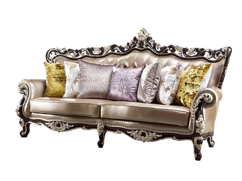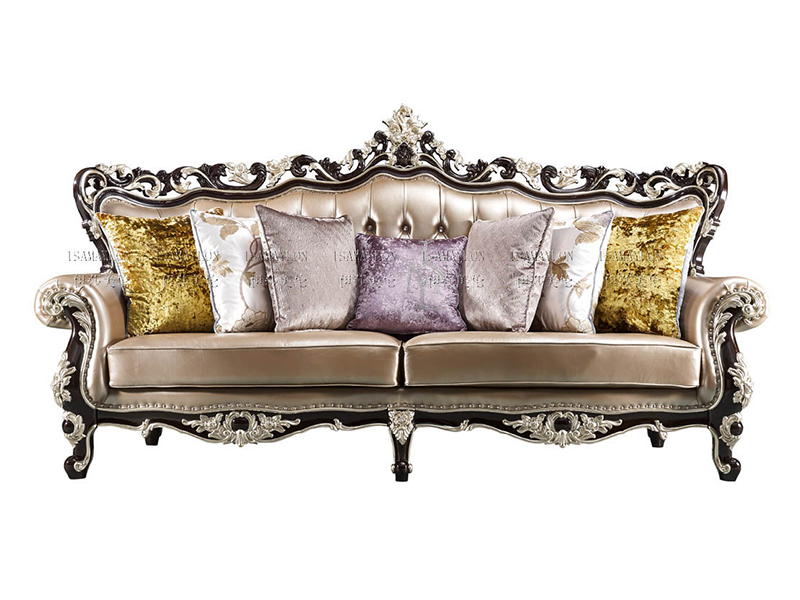 伊莎美伦欧式新古典家具欧式客厅实木(榉木)真皮四人沙发BJSF-K20-4