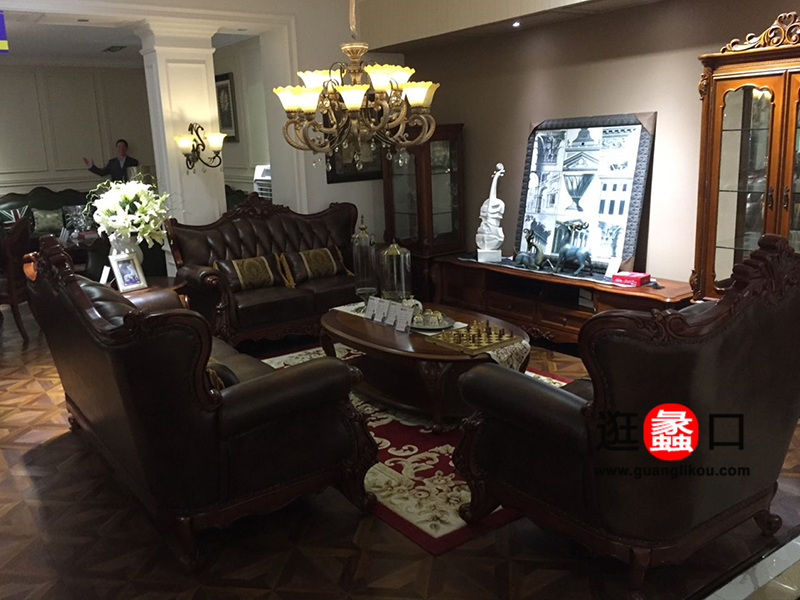 耀邦集团家具欧式客厅单人位/双人位/三人位真皮实木沙发