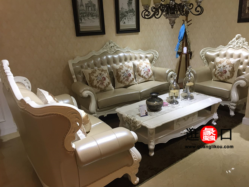 耀邦集团家具欧式客厅1+2+3真皮实木沙发