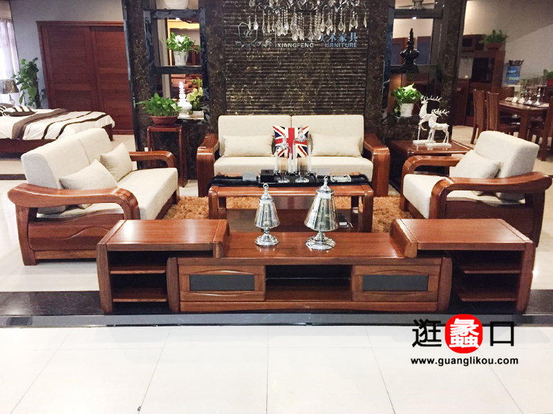 森资雅家私家具中式客厅双人位/三人位/单人位实木沙发/电视柜