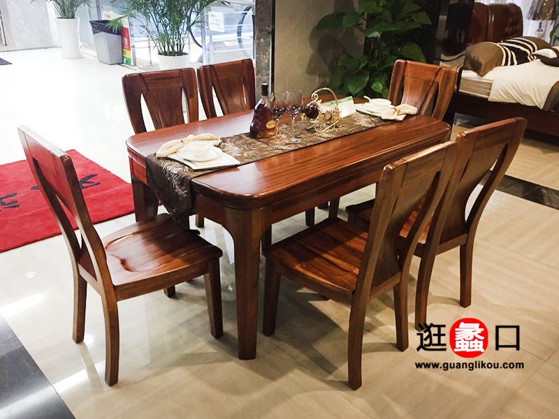 森资雅家私家具中式餐厅实木餐桌椅(一桌六椅)