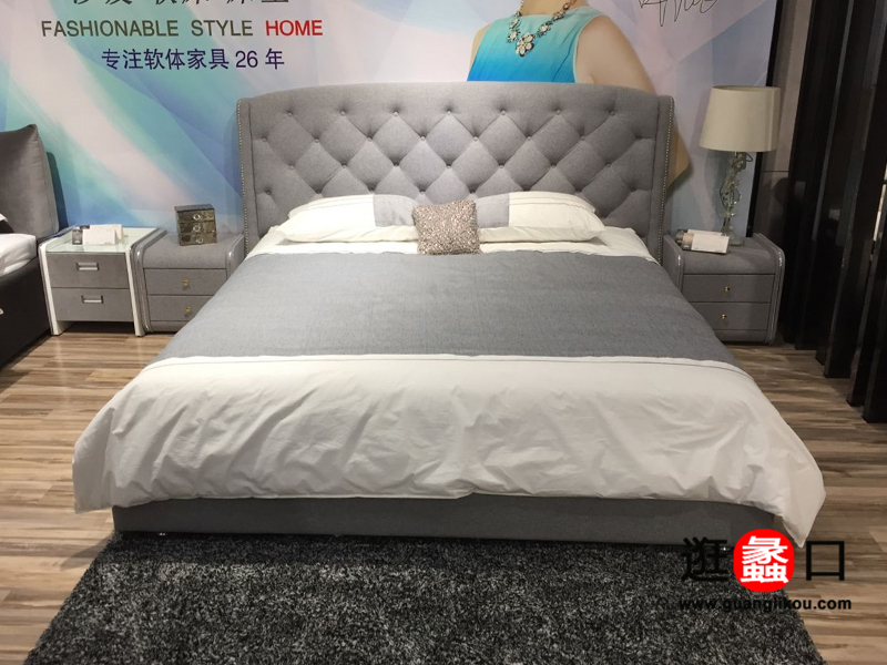 柏蘭家具简约现代卧室软体布艺双人大床