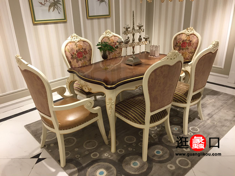 三禾家居欧式餐厅实木餐桌椅(一桌六椅)