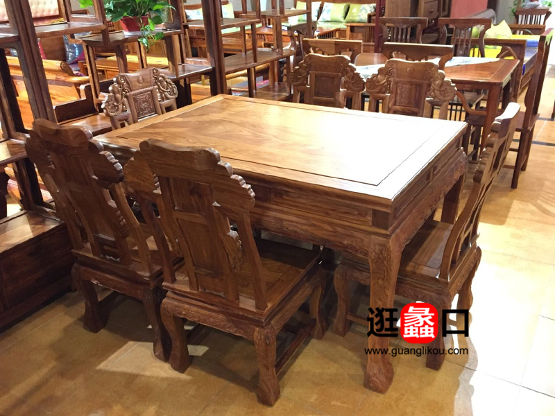 恒发红木家具中式餐厅实木餐桌椅(一桌六椅)