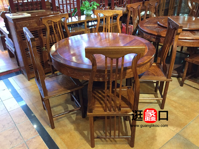 恒发红木家具新中式餐厅实木圆餐桌椅