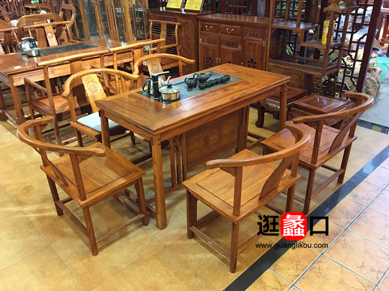 恒发红木家具中式古典餐厅实木餐桌椅/茶桌椅