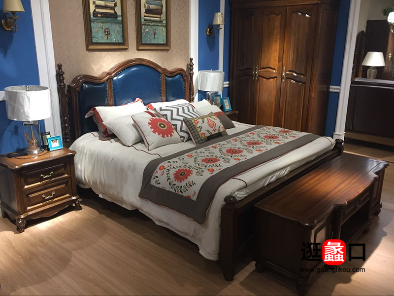 黄金海岸家具美式卧室实木双人大床/床头柜