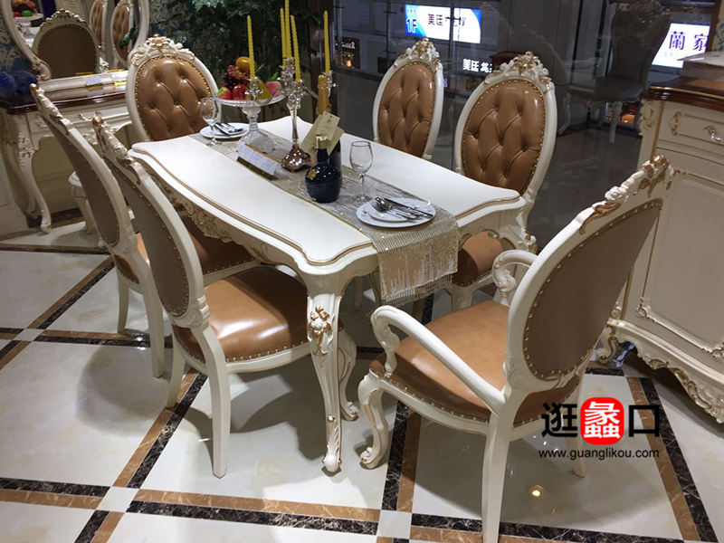 美罗公馆家具欧式餐厅实木真皮餐桌椅(一桌六椅)