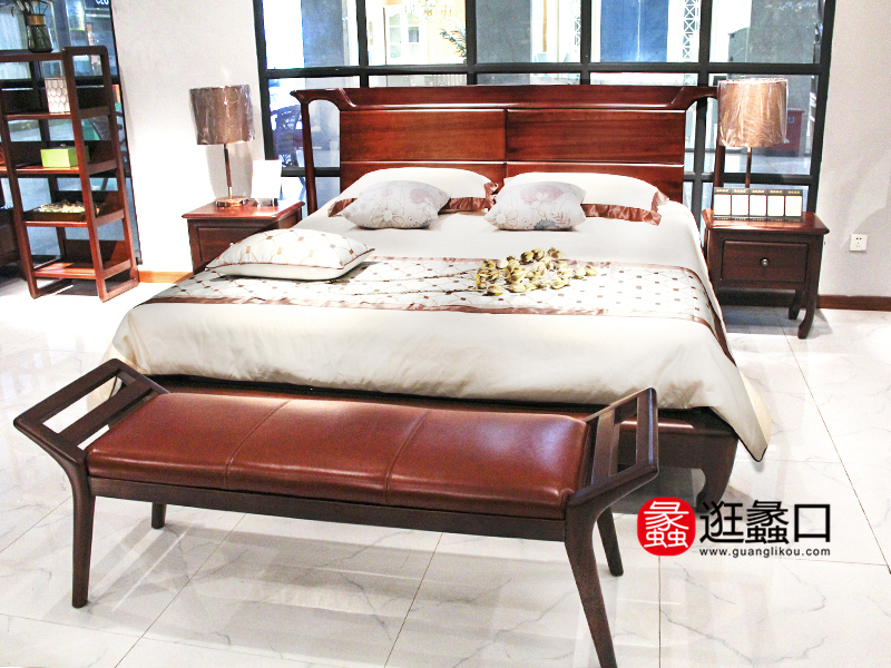 豪威美品家具北欧卧室实木双人床/床头柜​/床尾凳