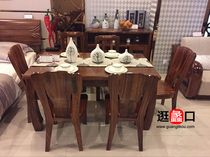 聚景园林家具新中式餐厅实木餐桌椅(一桌六椅)