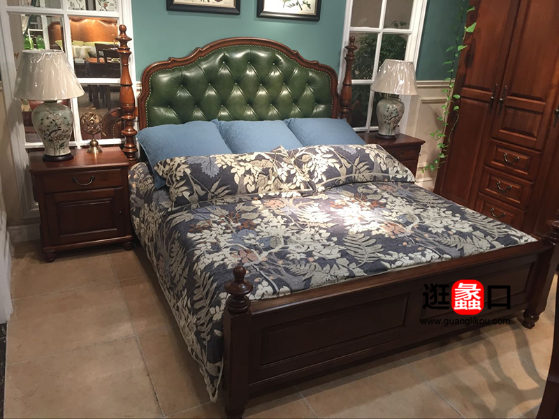 博杰美品家具美式卧室实木双人大床/床头柜/衣柜