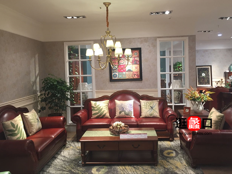 博杰美品家具美式客厅双人位/三人位/单人位实木真皮沙发