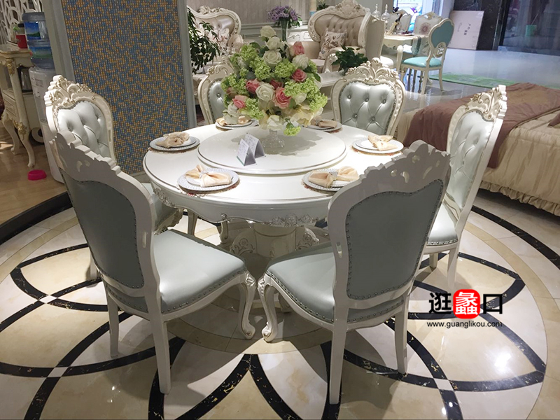 艾蒂娜家具欧式浅色餐厅实木圆餐桌椅/椅子