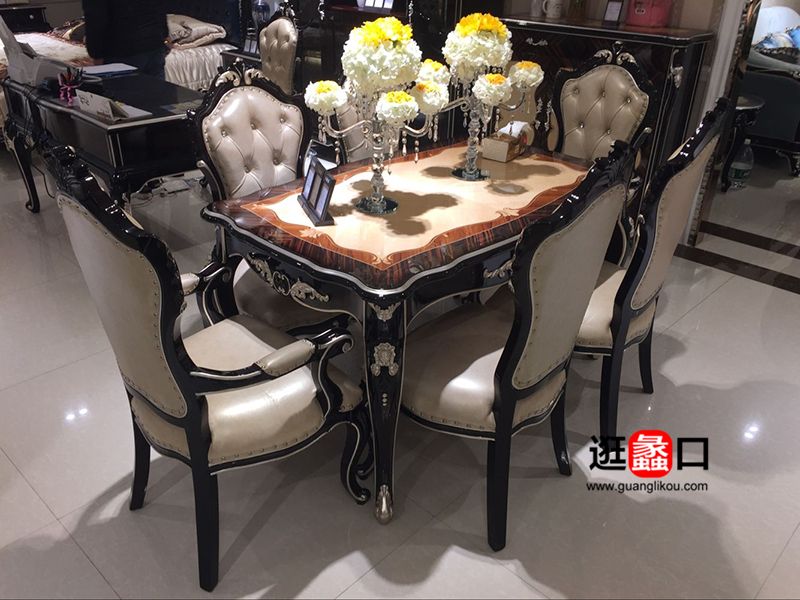 卡维娜家具欧式餐厅实木圆餐桌椅组合/长方形饭桌