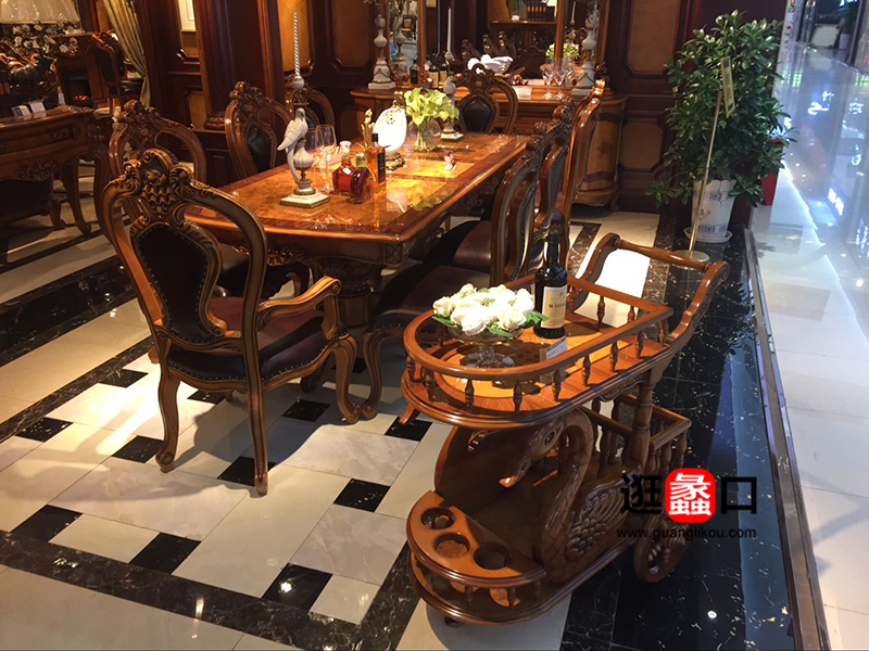 欧维森家具欧式餐厅纯手工实木雕花餐桌椅