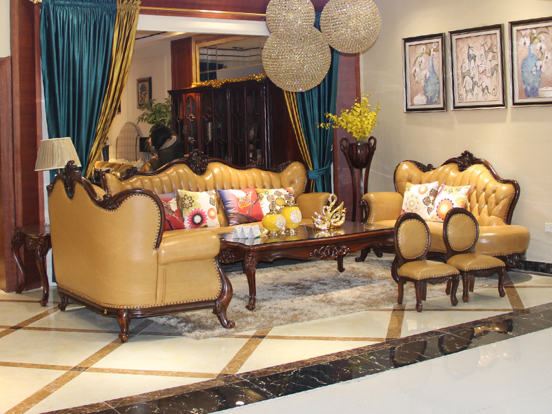 豪森家具欧式客厅双人位/三人位/单人位真皮沙发/茶几/电视柜组合