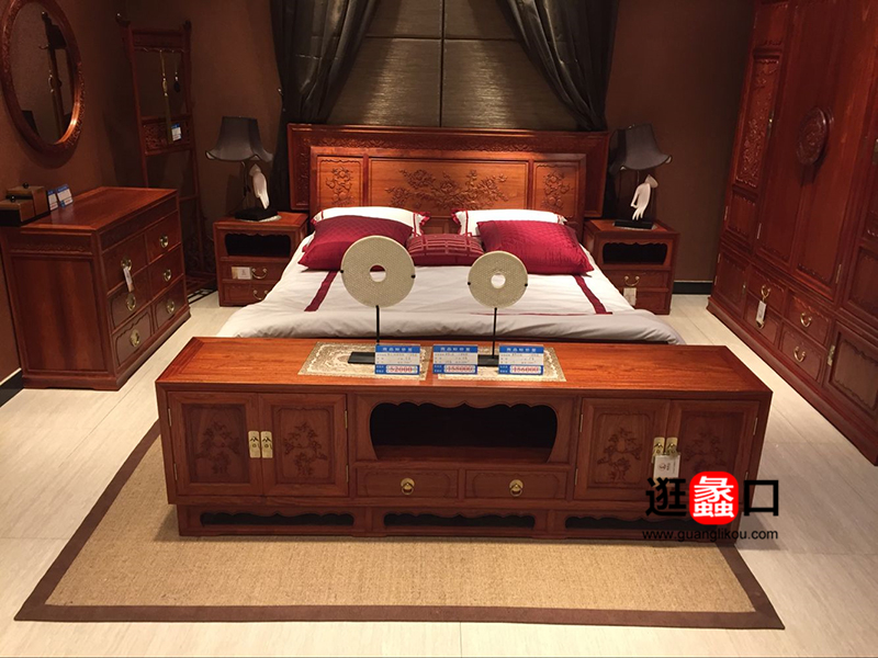 大唐红木家具中式古典卧室红木双人大床/床头柜