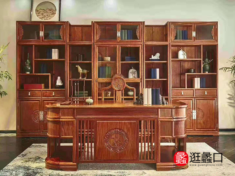 苏荷春晓家具新中式书房实木书桌椅+书柜组合