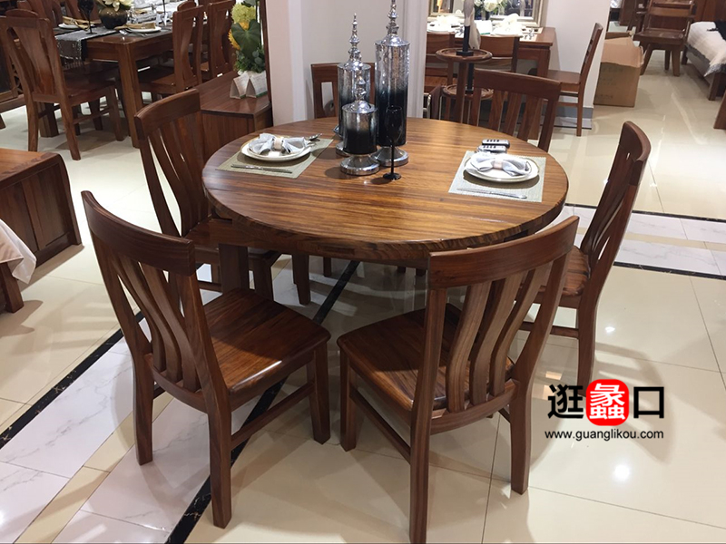 缘木居红木家具中式古典餐厅实木圆餐桌椅