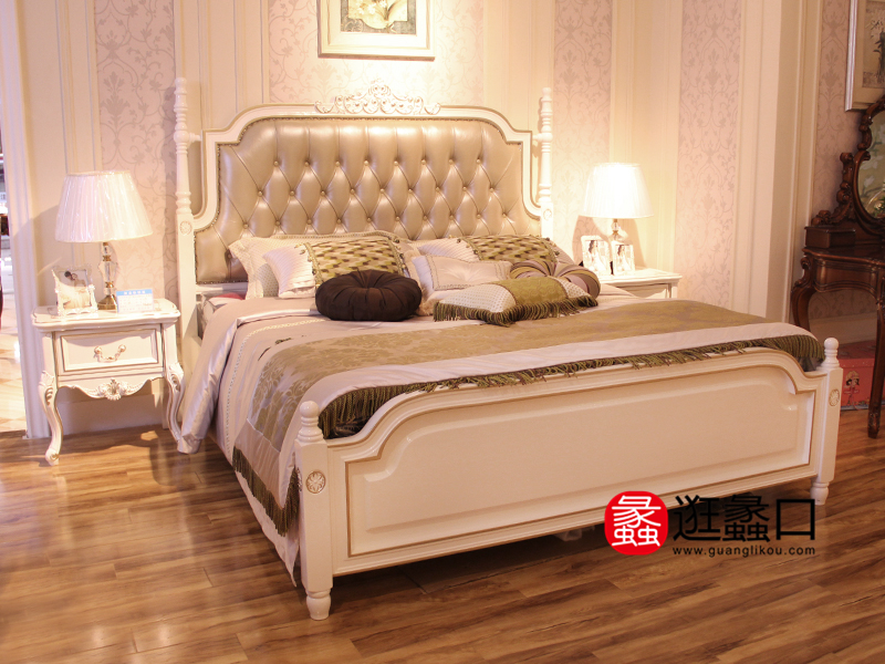 金樽凯特家具美式卧室实木白色皮艺软靠双人床/婚床/床头柜/衣柜