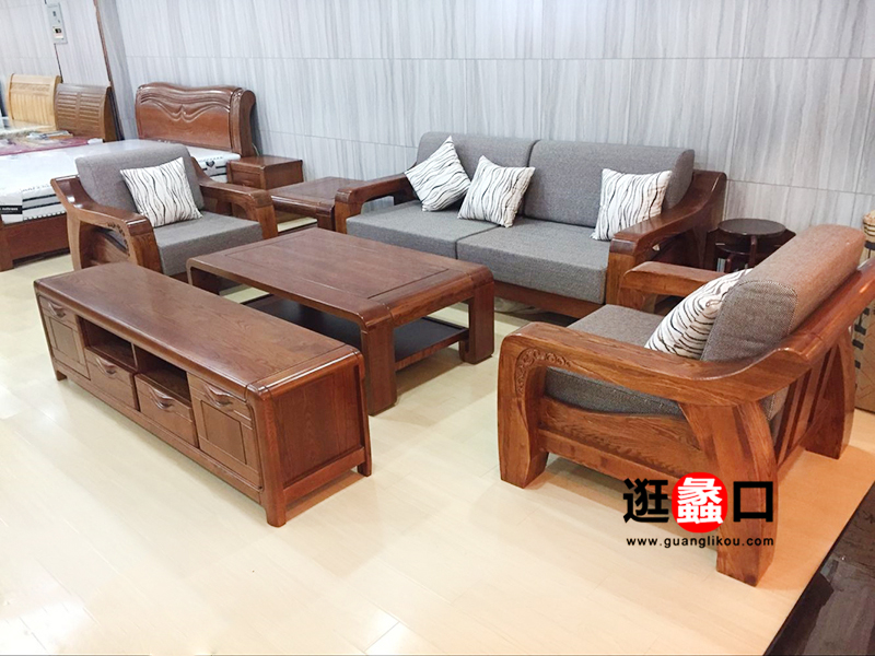 新俬路家具中式客厅实木布艺软包沙发组合/茶几